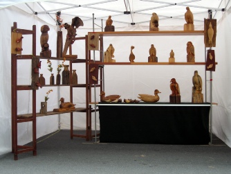 Upper right: Me with two falcon carvings I gave to the people who gave me the chestnut log I used for the carvings.